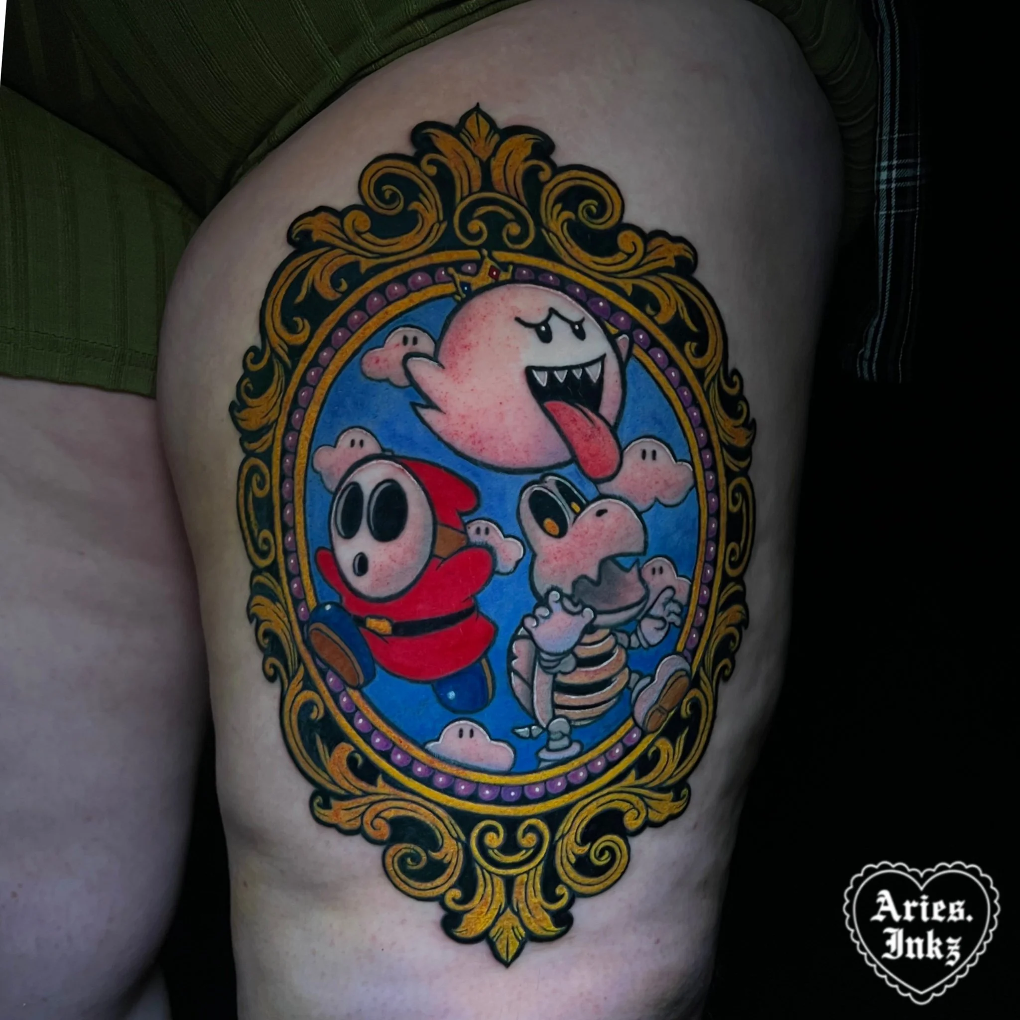 My fellow nerds, you have found a safe place :) I’m somewhat of an expert on all things animated, kawaii, and anime. This style is one of my favorites because it mixes nostalgia and creativity in the best way possible. Whether it’s your favorite anime character, a cute original design, or something inspired by your favorite videogame, these tattoos are always full of life and color.
