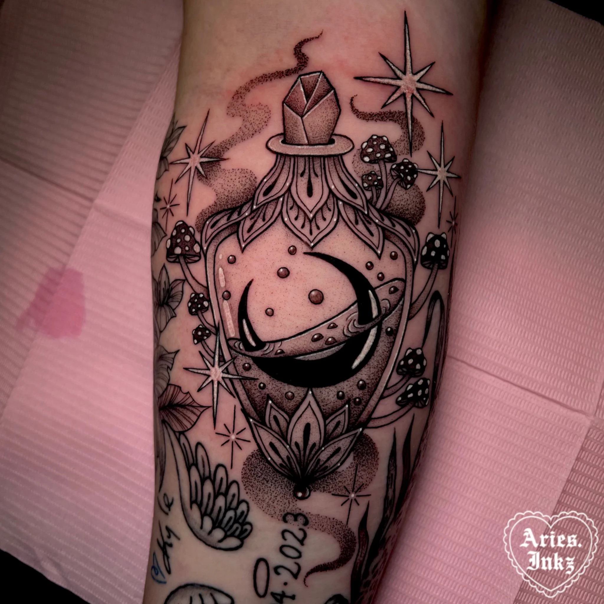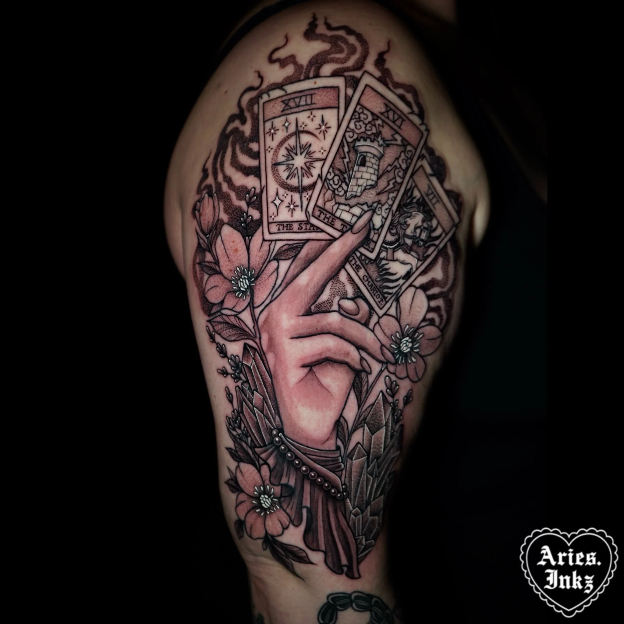 Black and grey tattoos have such a classic, effortless vibe. I love how many different styles you can create using just shades of black. It’s simple, striking, and never goes out of style. This style gives me space to focus on soft blends, smooth contrast, and those little details that make each piece feel alive. I particularly like working with stipple style shading or black and grey opaques.