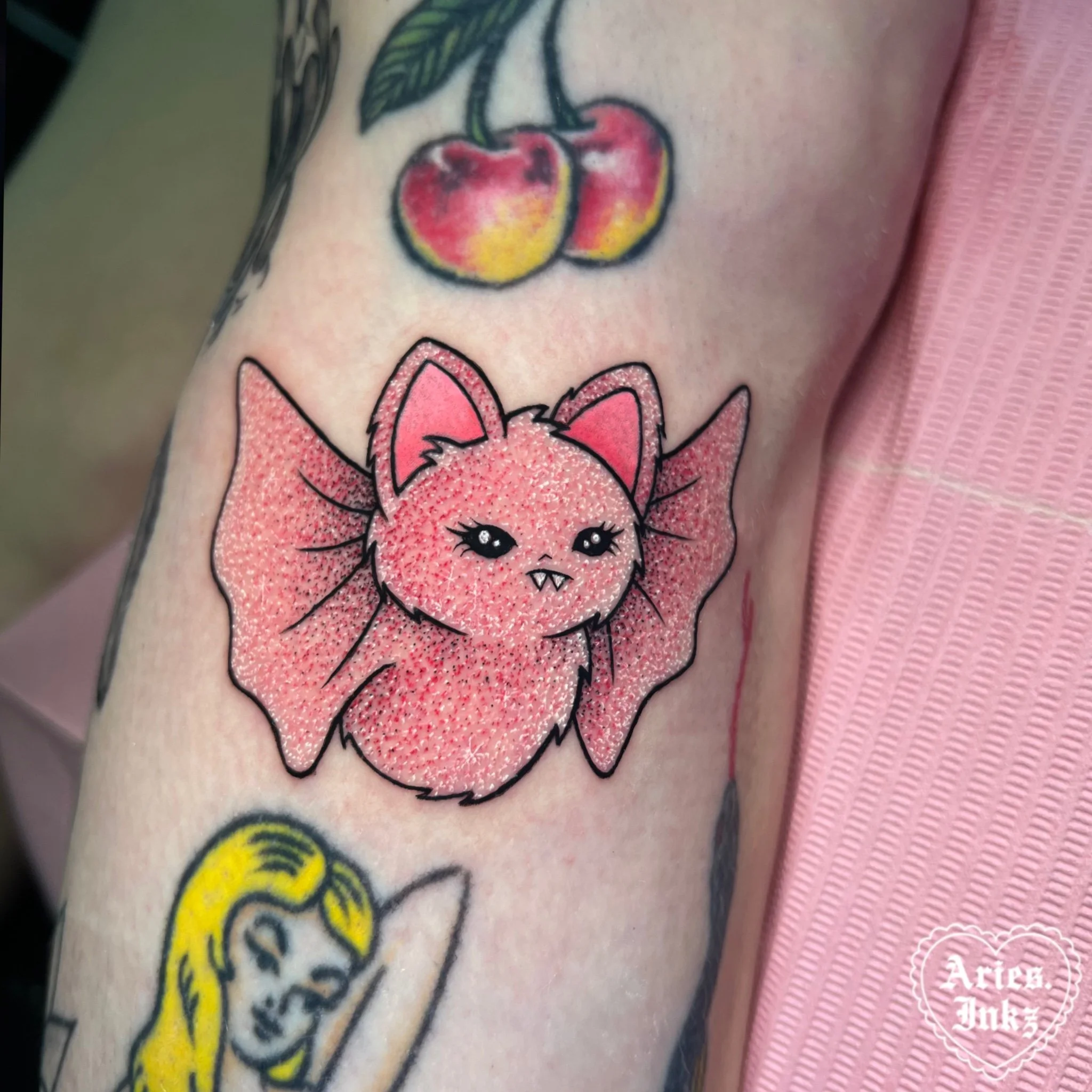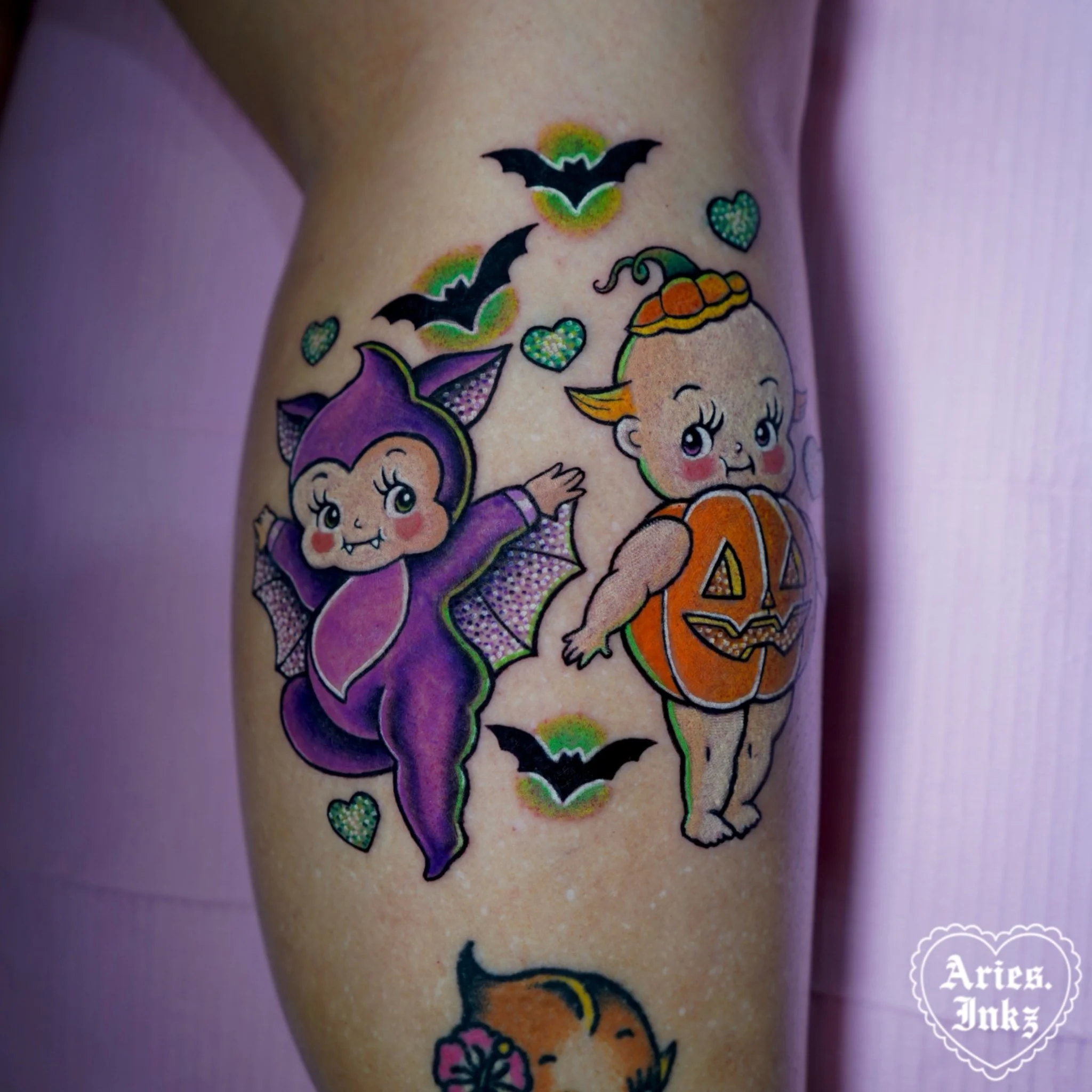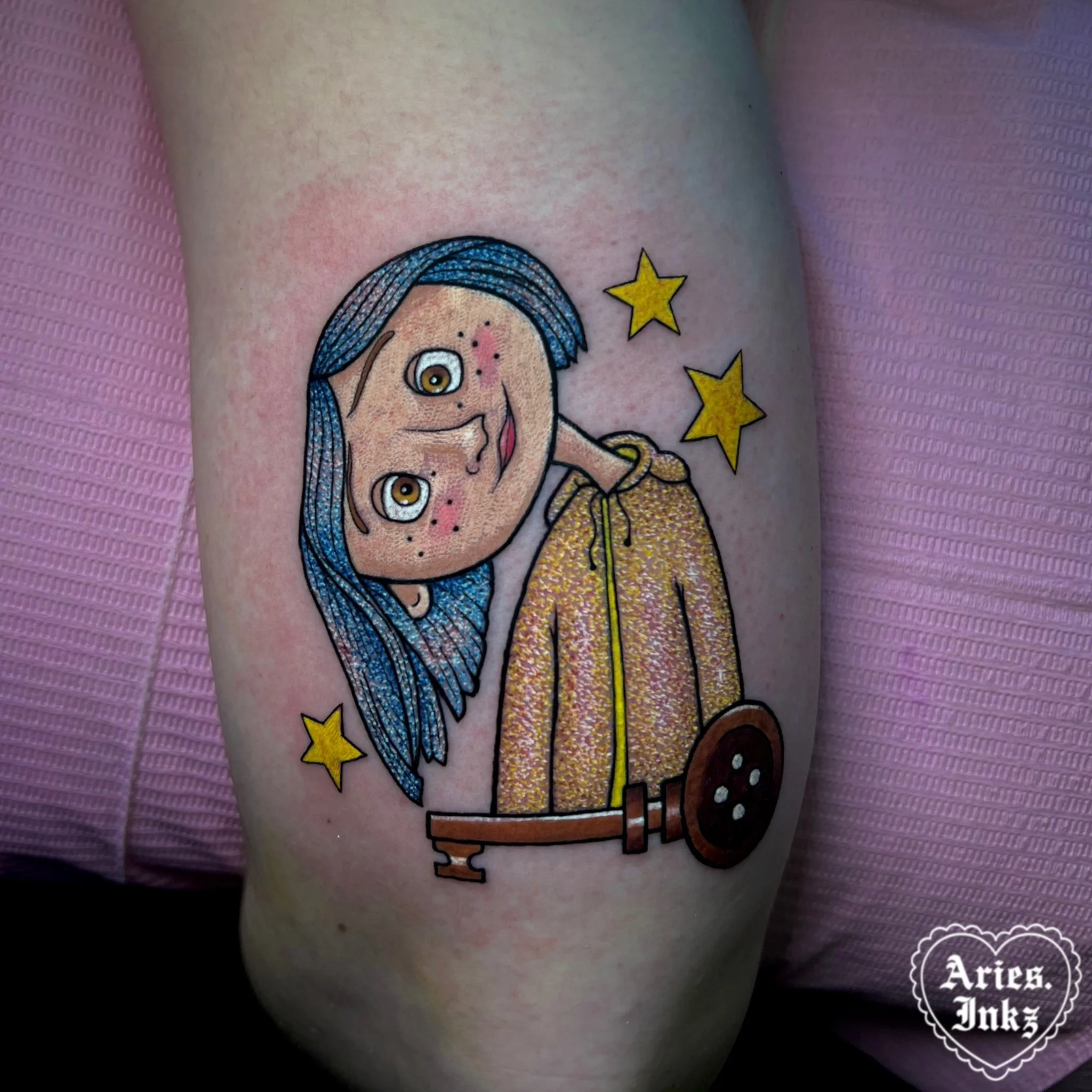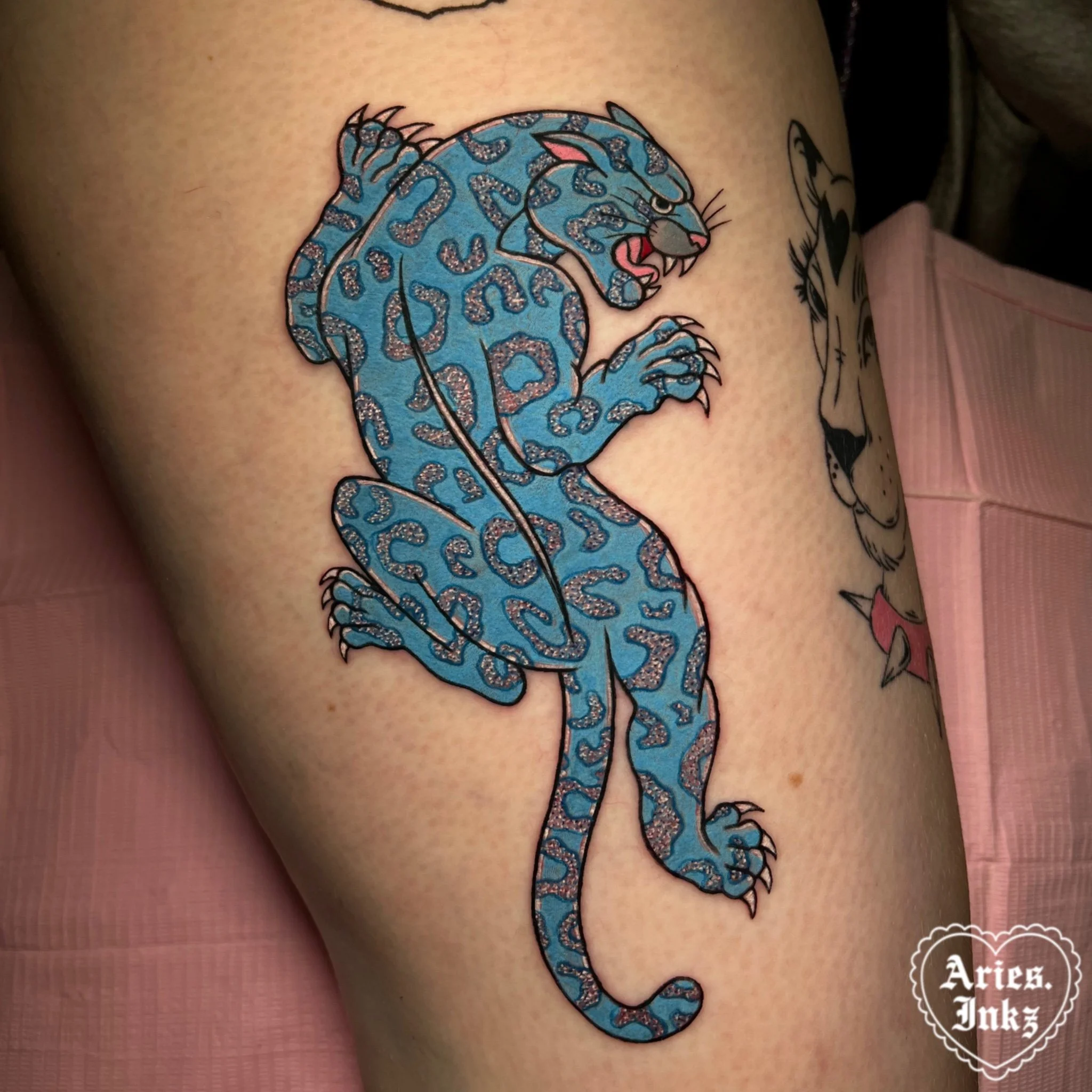 Glitter tattoos are one of my absolute favorite styles to tattoo in. They’re playful, eye-catching, and bring such a fun twist to color tattoos. This style is still pretty new in the industry, which makes it even more exciting to create! I love the challenge of using color, contrast, and highlight details to make the tattoo look like it’s sparkling right on your skin.